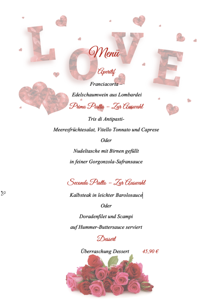 Auf Wunsch stellen wir gerne spezielle, mehrgängige Menüs zusammen.